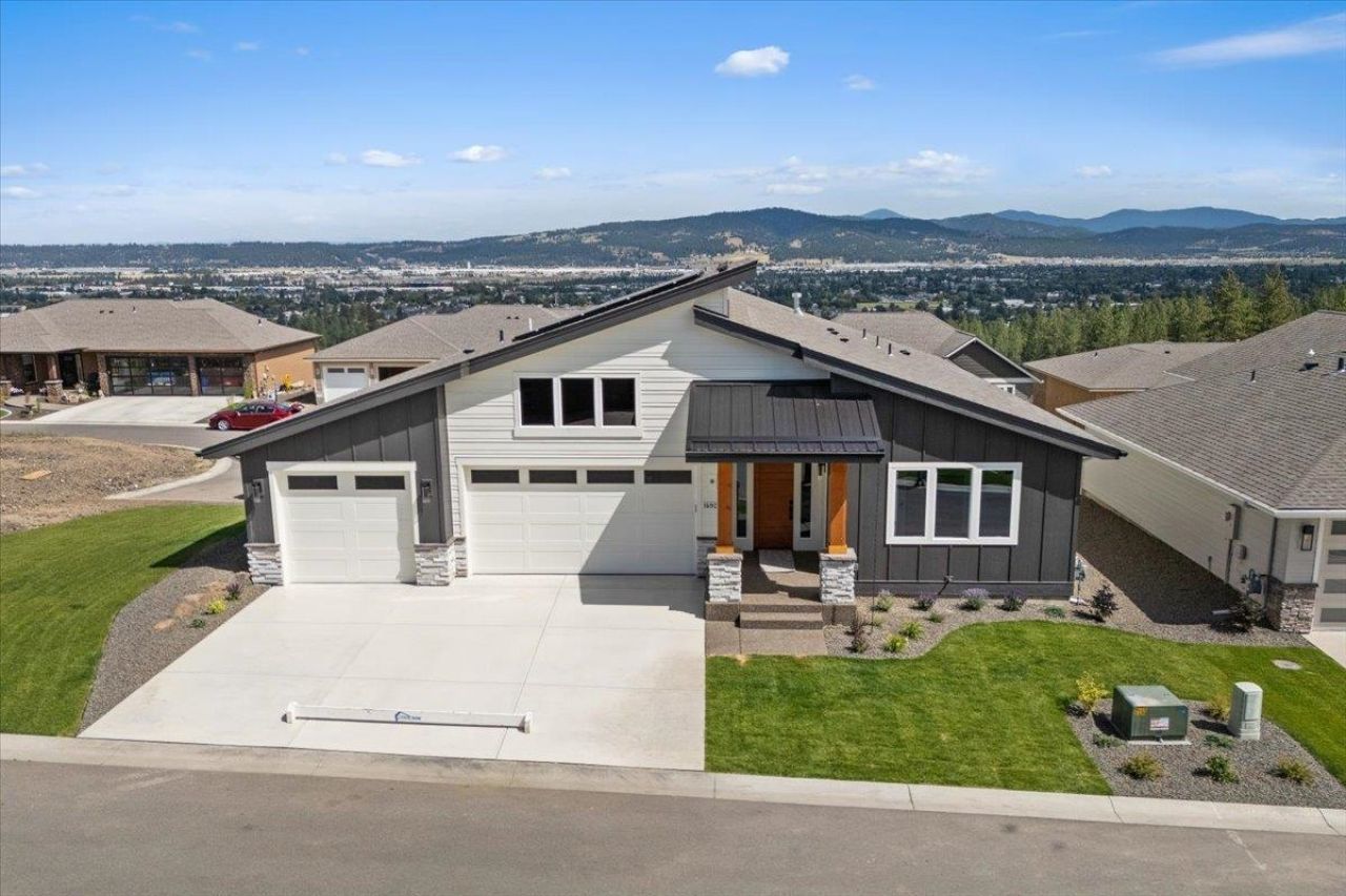 Welcome home to Monterra- Nestled in S. Spokane Valley, this beautifully designed home blends high-end finishes with everyday ease, all within a gated community offering breathtaking views. Step inside a light-filled, open-concept layout featuring vaulted ceilings & striking modern linear fireplace with floor-to-ceiling stone surround. The chefs kitchen is made for gathering, complete with a double oven appliance package, oversized quartz island, & generous counter space. The primary suite feels like a retreat, offering a spa-inspired bathroom, large walk-in closet, & direct access to the laundry room. Dont miss the 2 other bedrooms plus a large flex room. Outside, enjoy the oversized covered deck with sweeping 180-degree views, perfect for morning coffee or sunset dinners. A fully landscaped yard & impressive 978 SF 4-car garage complete this exceptional home. Come experience the ease & elegance of Monterra living-schedule your showing today & see what makes this home truly special.