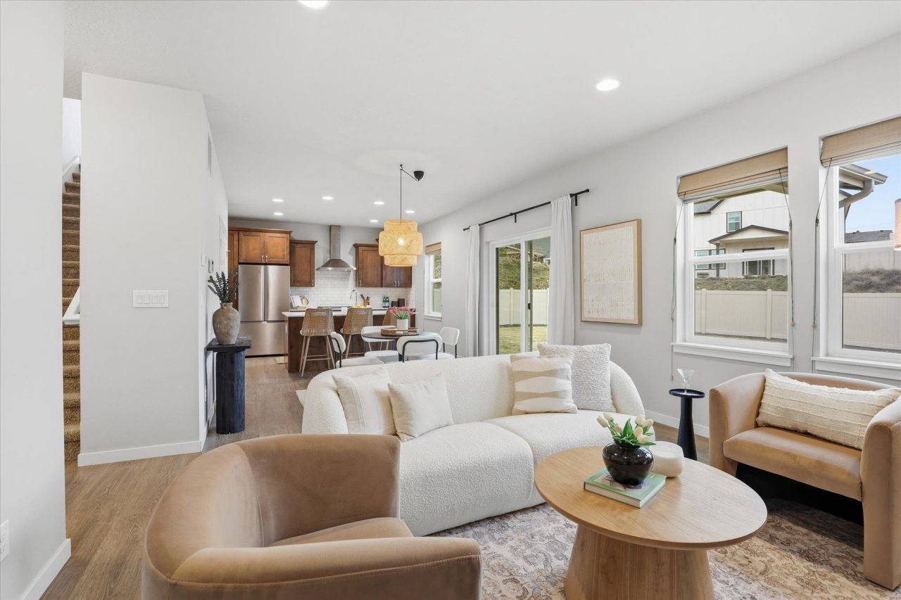 Welcome home to this better than new 2 Story home on top of gated Legacy Ridge in coveted Liberty Lake. Youll be just minutes to great schools, shopping, dining, and outdoor recreation! This stunning home has a great flexible open floorplan with central gas fireplace and durable lvp flooring throughout the main living areas. Kitchen boasts beautiful wood cabinetry, hard surface countertops, gas stove/range, and a handy island eating bar. Convenient main level office/bedroom (lacks closet) and half bathroom. Upstairs, enjoy the large primary bedroom with en-suite bathroom including dual sinks and large walk-in closet. The additional upstairs living area is great to have and 2 more bedrooms and a full bathroom leave room for everyone. Enjoy the outdoors in the easy to maintain landscaped and fenced backyard. The finished 3 car garage will hold all your vehicles neatly. Dont wait on this opportunity to make this terrific Liberty Lake home yours!
