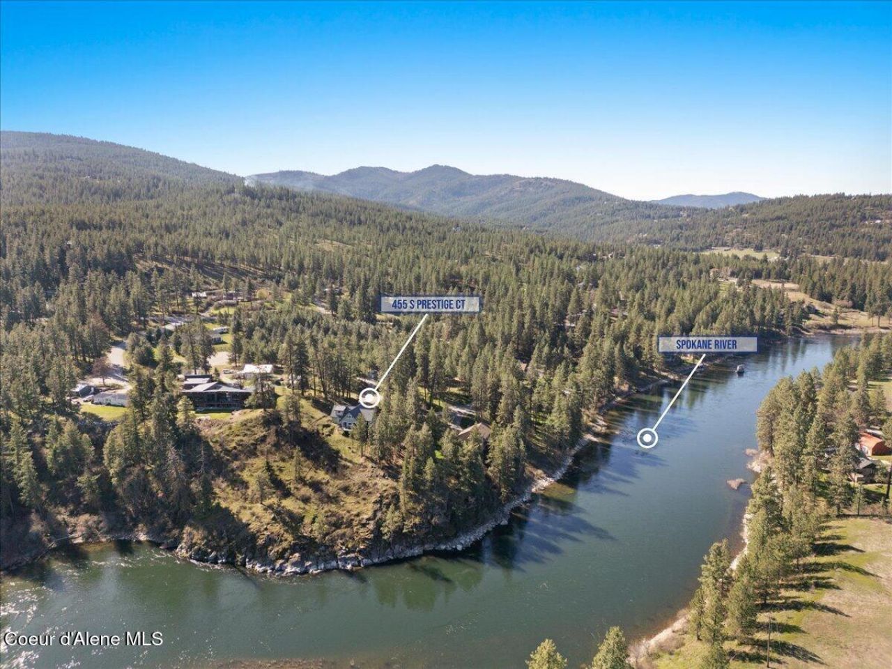 Perched above the Spokane river with breathtaking cliffside river views, this exceptional 2023-built home offers the perfect blend of modern comfort & natural beauty. Set on 2.16 private acres with 190 ft of river frontage, this property delivers all the beauty of N Idaho in a pristine, move-in-ready condition custom home. This custom home offers 4 bedrooms, 3.5 baths, & a bright open-concept layout. Main level primary ensuite with river views. Add'l primary suite upstairs could be a family room. Kitchen has large island & plentiful storage. Main level laundry/mud room off garage. Enjoy the large deck overlooking the river surrounded by Idaho natural landscaping & wildlife. Insulated 2-car garage plus a 10x20 shed w/power for storage or hobbies, open RV parking, plus a Generac generator for reliability. All appliances included. Don't miss this rare opportunity for a newer custom home on riverfront acreage combining modern comfort, stunning scenic views, & privacy located close to town.