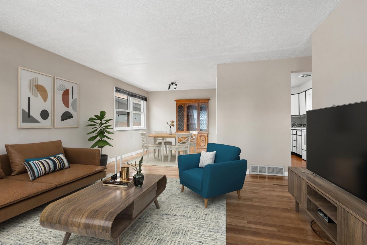 Charming and meticulously maintained Northside rancher with timeless appeal. Step inside to find beautiful wood floors spanning the main level and a light-filled living room that flows effortlessly into the dining area, complete with a built-in buffet and customized open shelving design that adds character and function. The kitchen showcases a thoughtful layout with easy backyard access- perfect for entertaining and everyday living. The main floor features three comfortable bedrooms and an updated bathroom. Downstairs, enjoy a versatile family or media room, a private primary suite with en suite bath, plus a laundry and utility room offering generous storage or hobby space. Outside, the fully fenced backyard is a blank canvas ready for your vision, complemented by a two-car detached garage with convenient alley access. Centrally located near parks, shopping, freeway access and amenities- this home is a must-see.