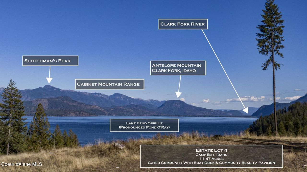 This land located at Est Lt 3/4 Camp Bay Estates, Sagle, ID 83860 is currently listed for sale with an asking price of $3,100,000. The property has approximately 23.53 Acres. Est Lt 3/4 Camp Bay Estates is located within the Lk Pend Oreille - 84 school district. Search Sagle real estate on www.spokanehomegirl.com today.